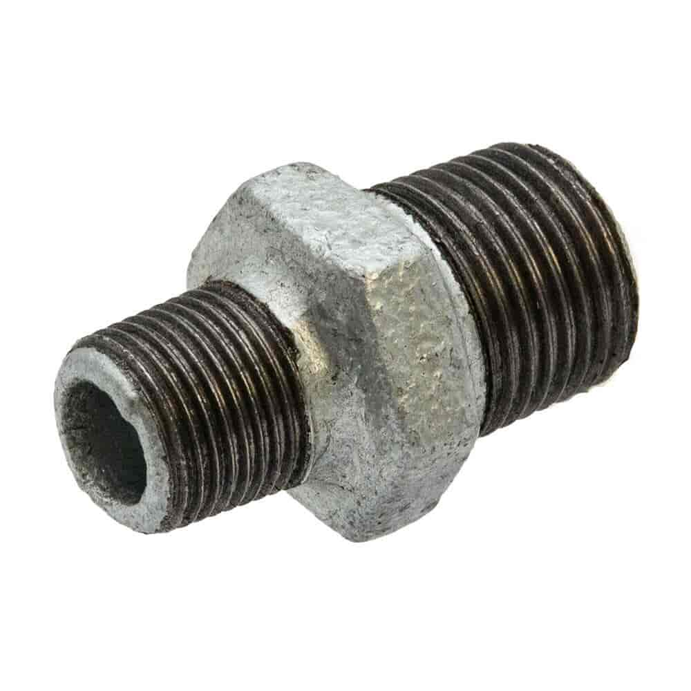Galvanised Iron Reducing Hex Nipple – 1/2" x 3/8" M x M
