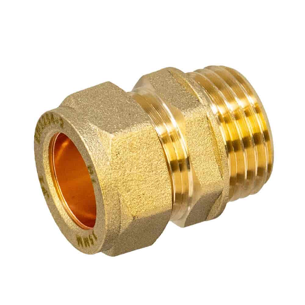 The Brass Compression Male Adapter – 15mm x 1/2" BSP is a high quality straight coupling to connect a 15mm copper pipe to a 1/2" BSP male threaded connection. With a compression end to BSP parallel male this fitting is ideal for heat free installations in water, heating, oil and low pressure gas systems.