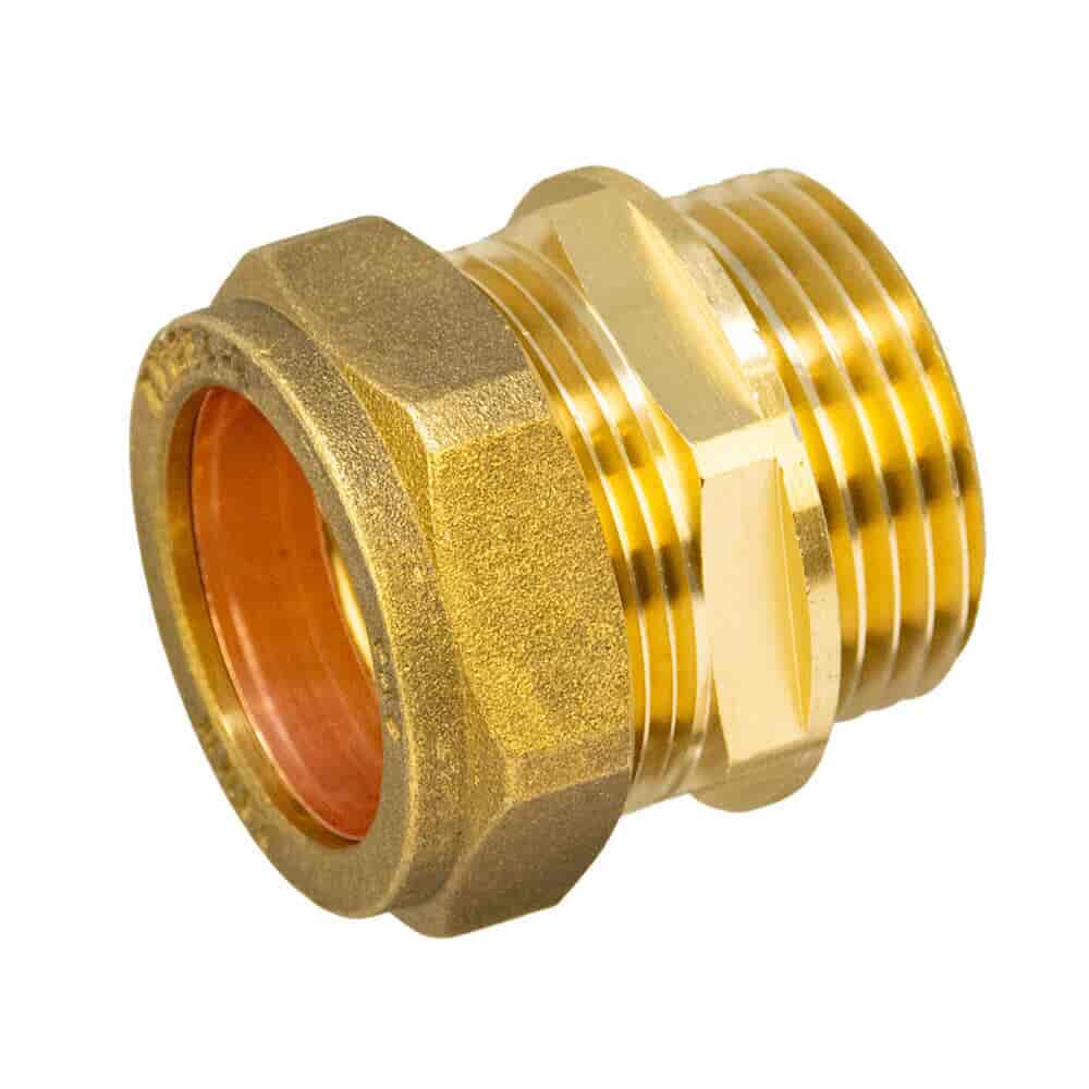 The Brass Compression Male Adapter – 28mm x 1" BSP is a high quality straight coupling to connect a 28mm copper pipe to a 1" BSP male threaded connection. With a compression end to BSP parallel male this fitting is ideal for heat free installations in water, heating, oil and low pressure gas systems.