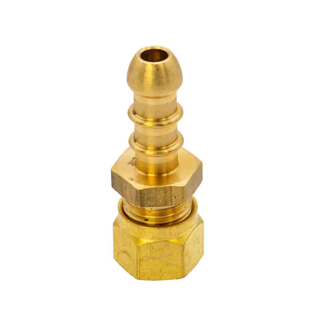 With an 1/4" compression nut and olive this connector will give an accurate and reliable fit for 8mm gas hose and will also accept 10mm (3/8") tubing where required. Made from durable brass it will perform indoors and outdoors.