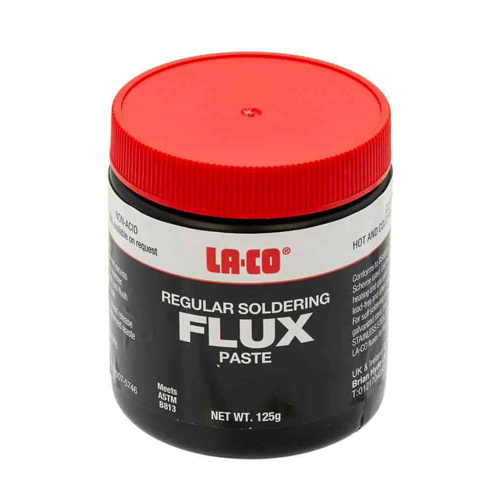 The LA-CO Soldering Flux 125g is a soft soldering paste for creating strong joints in potable water and gas boiler installations. Safe and easy to use, this non-acid, non-toxic, lead-free flux removes common safety worries and gives great soldering results.