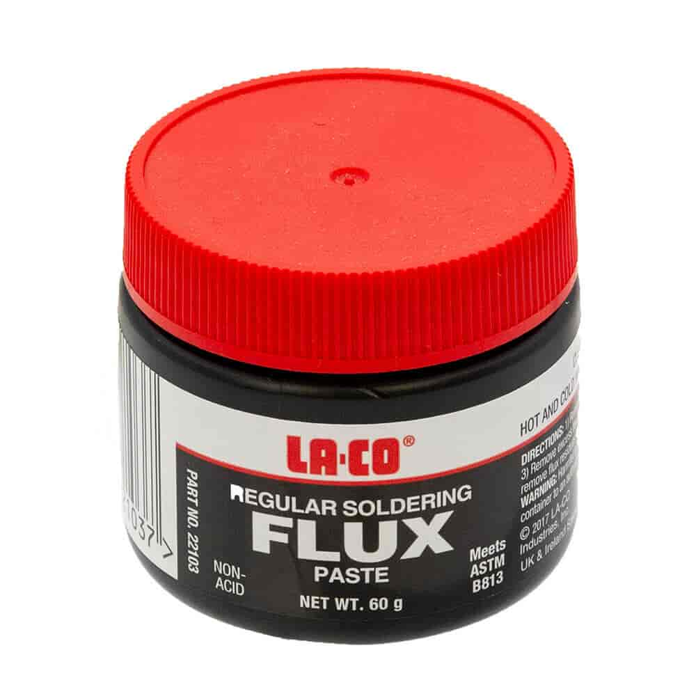 The LA-CO Soldering Flux 60g is a soft soldering paste for creating strong joints in potable water and gas boiler installations. Safe and easy to use, this non-acid, non-toxic, lead-free flux removes common safety worries and gives great soldering results.